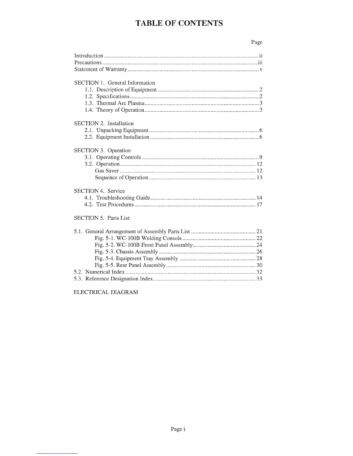 Thermal Arc WC100B - Table of Contents