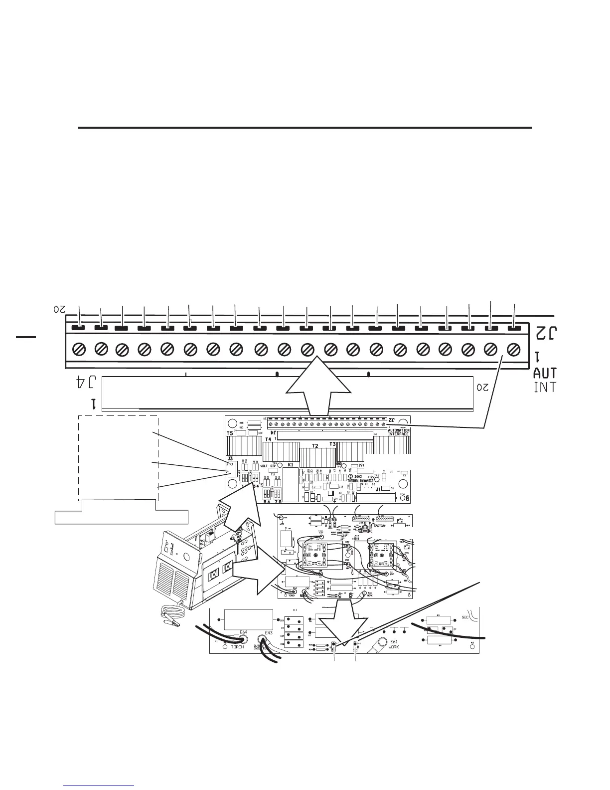 b. For raw arc voltage, connect to terminals E2 (positive) and E1 (negative) on the Output Power PC Board.