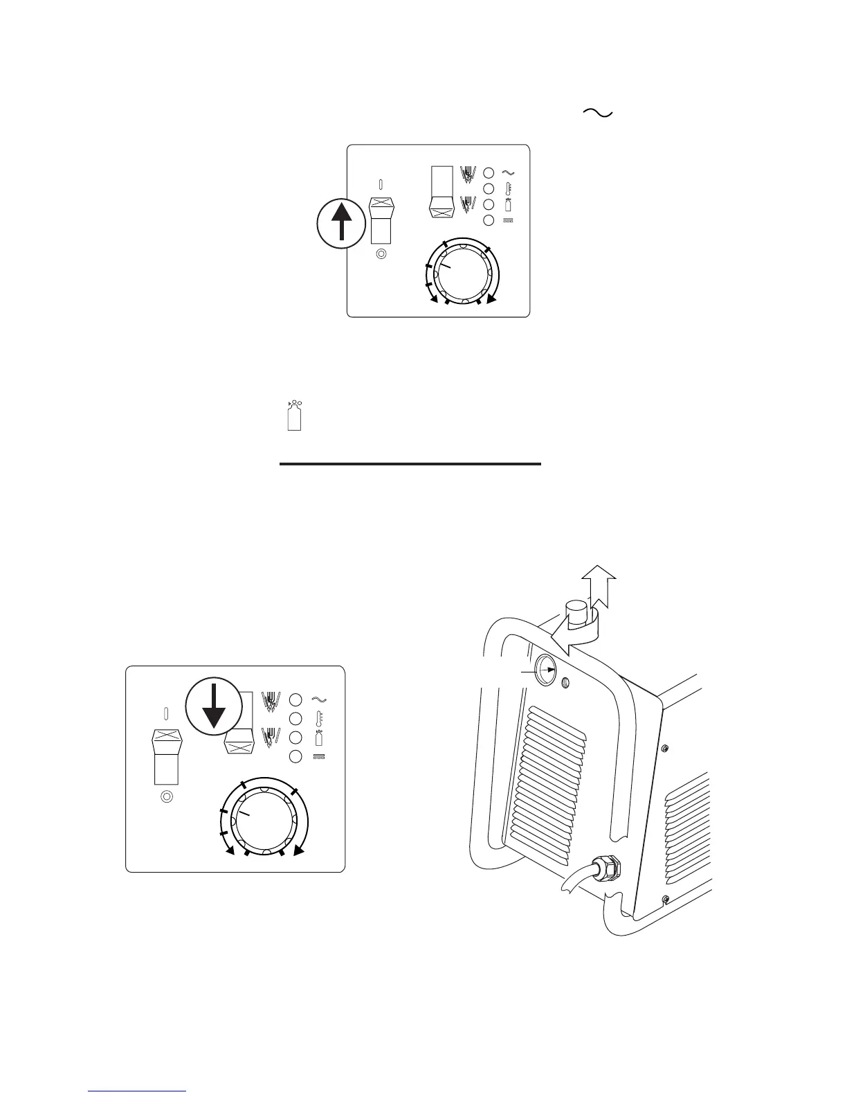 Place the Power Supply RUN / SET switch to the SET (down) position. Gas will flow. Adjust gas pressure to 65