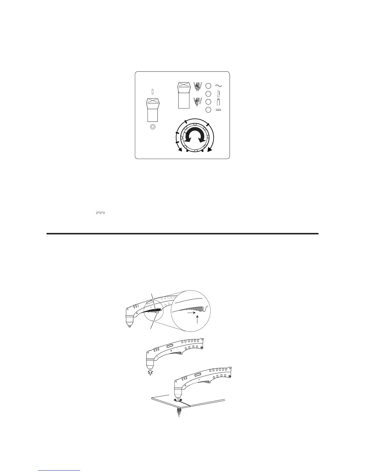 starts. DC indicator turns on. Bring the torch within transfer distance to the workpiece. The pilot arc stops