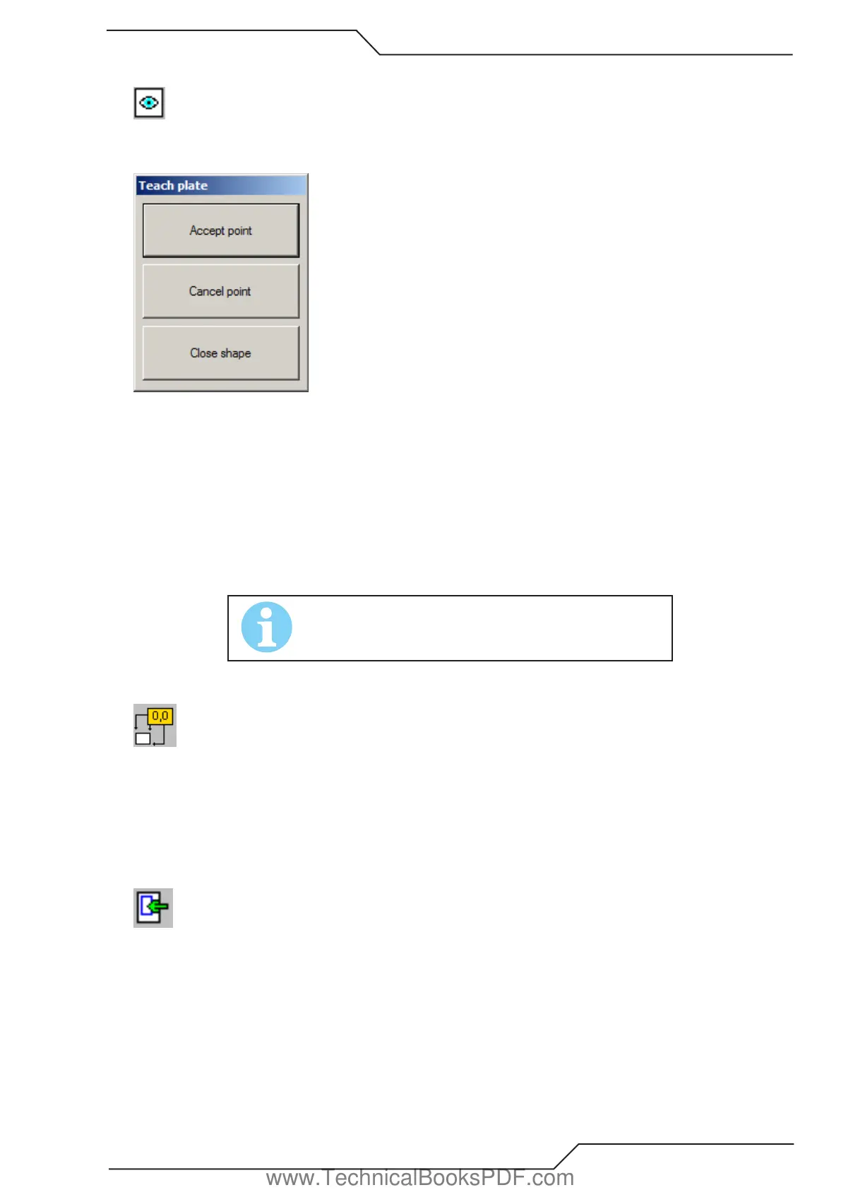 • Move the laser pointer over the next corner of the plate. Click Accept point again. Repeat this step while you have shown all the