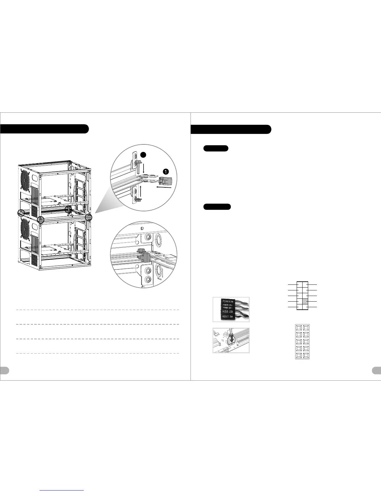 Case LED Connection / On the front of the case, you can find some LEDs and switch leads. Please consult your user