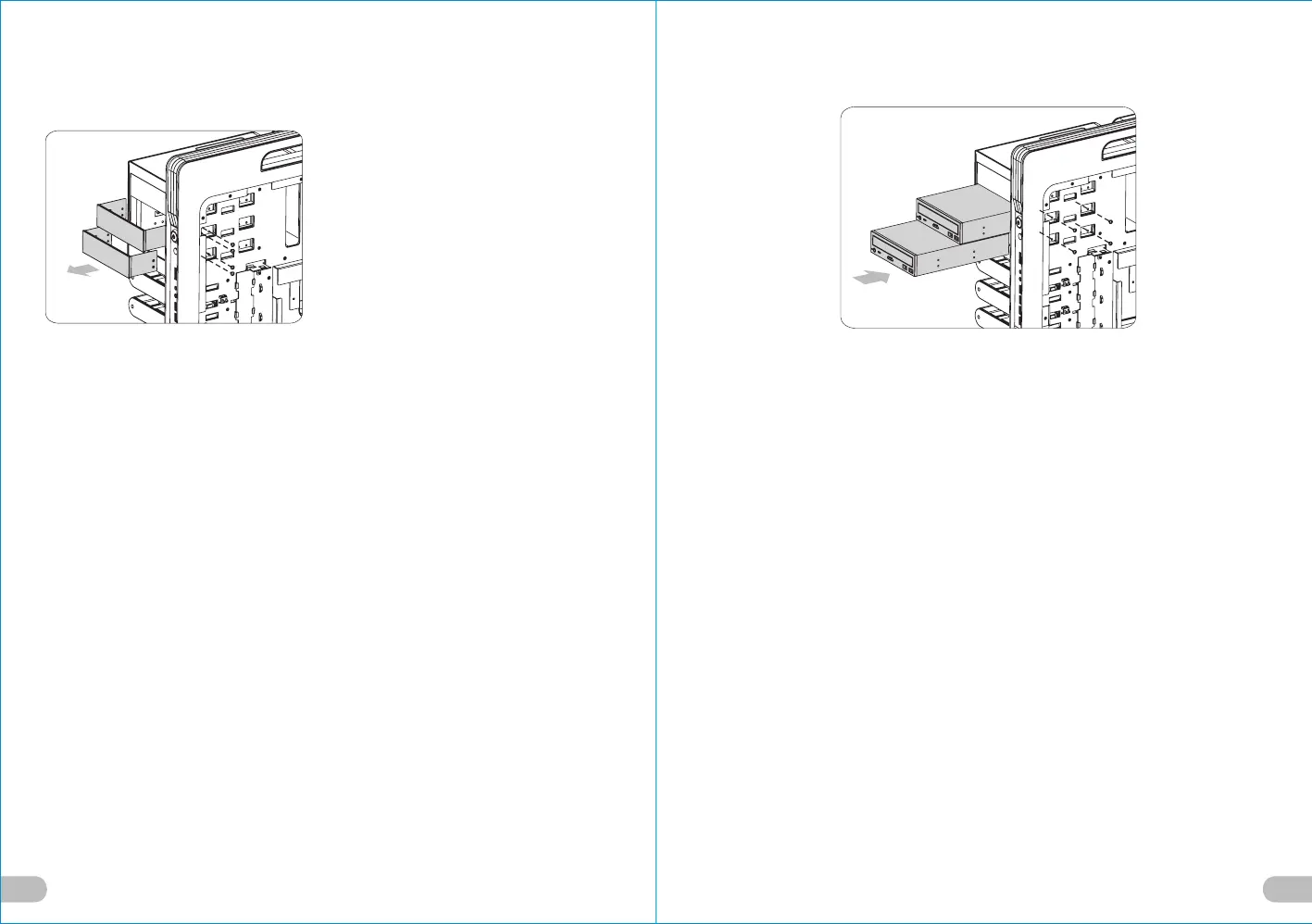 7. 將5.25”裝置插入2或3插槽並用螺絲鎖上.