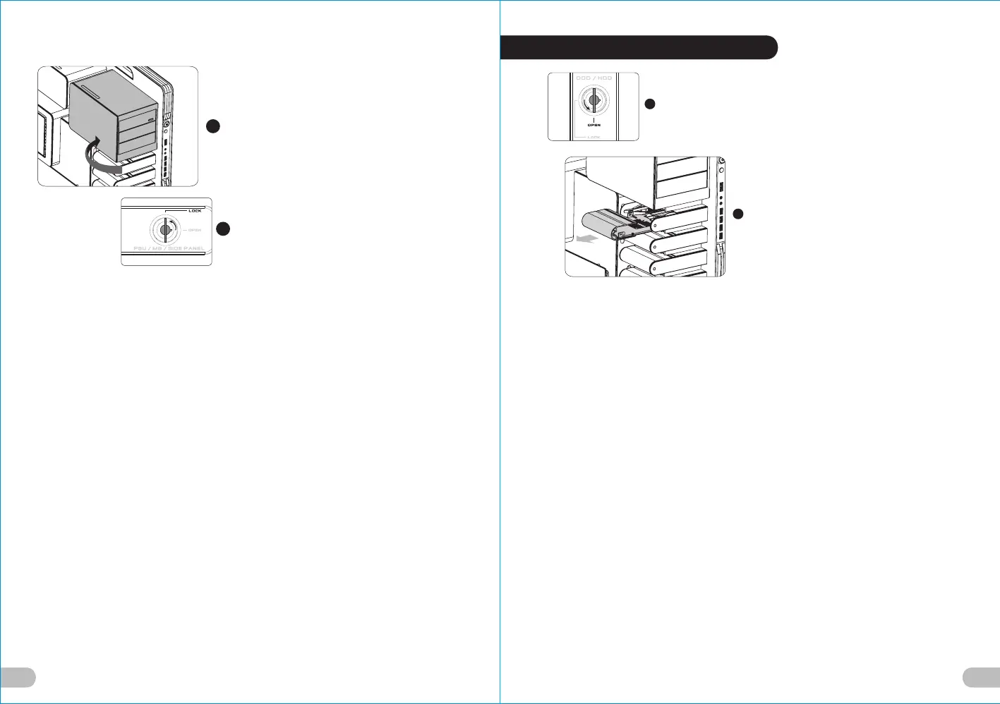 1. 用钥匙将侧板ODD/HDD锁孔转至