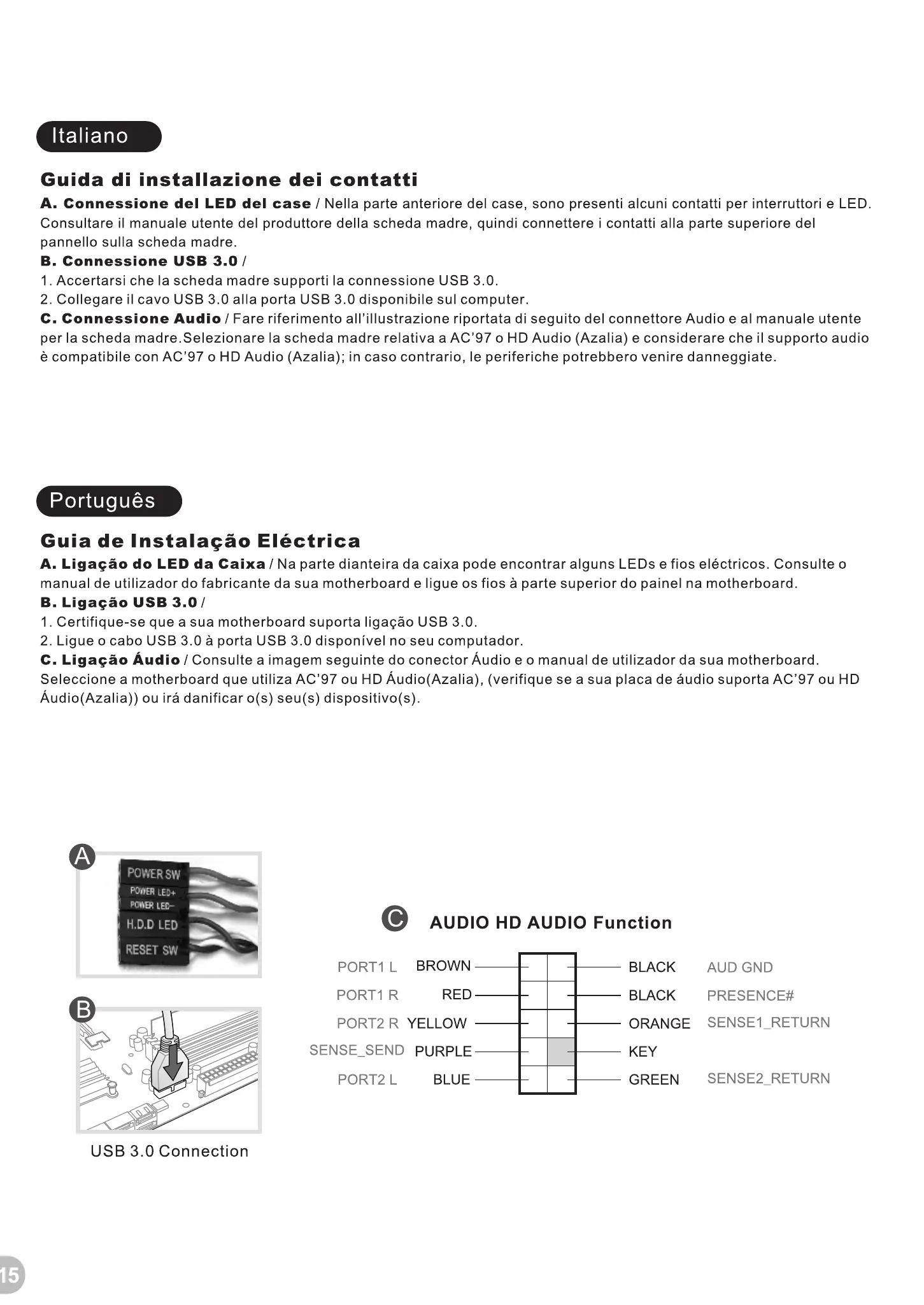 A. Connessione del LED del case / Nella parte anteriore del case, sono presenti alcuni contatti per interruttori e LED.