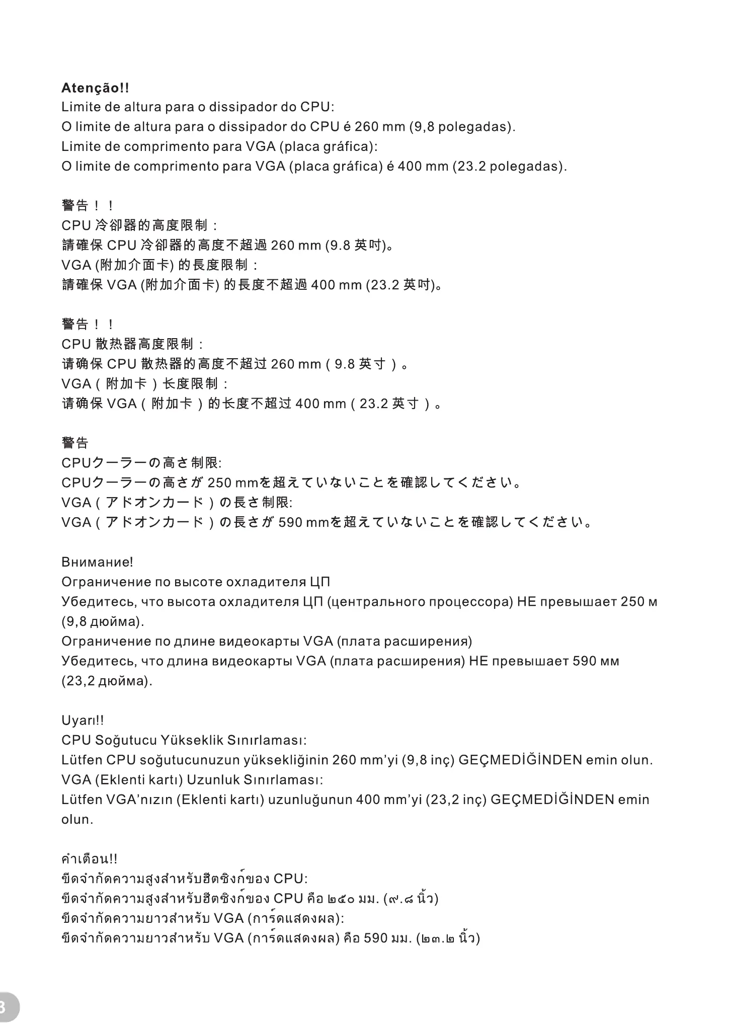 O limite de comprimento para VGA (placa gråfica) é 400 mm (23.2 polegadas).