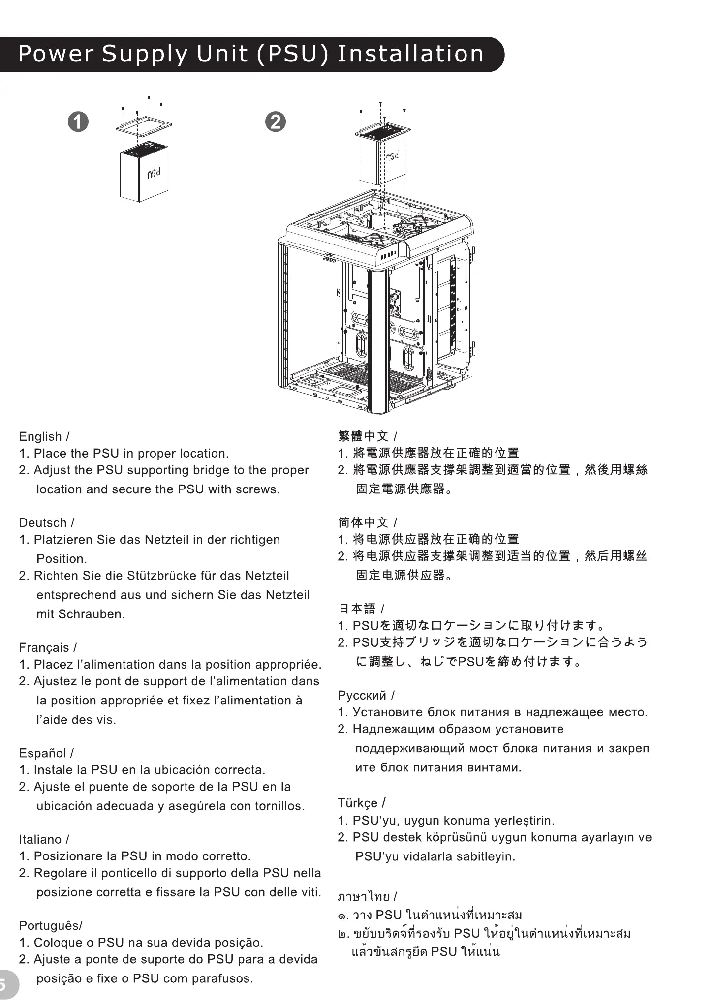 1. Place the PSU in proper location.