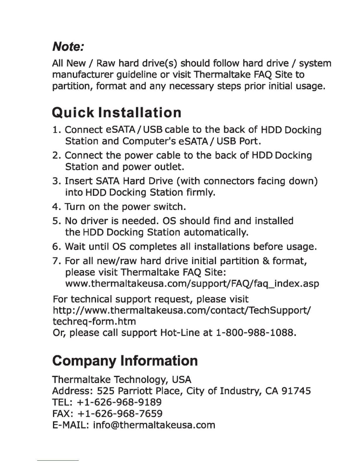 Thermaltake ST005U - Quick Installation Guide; Company Information