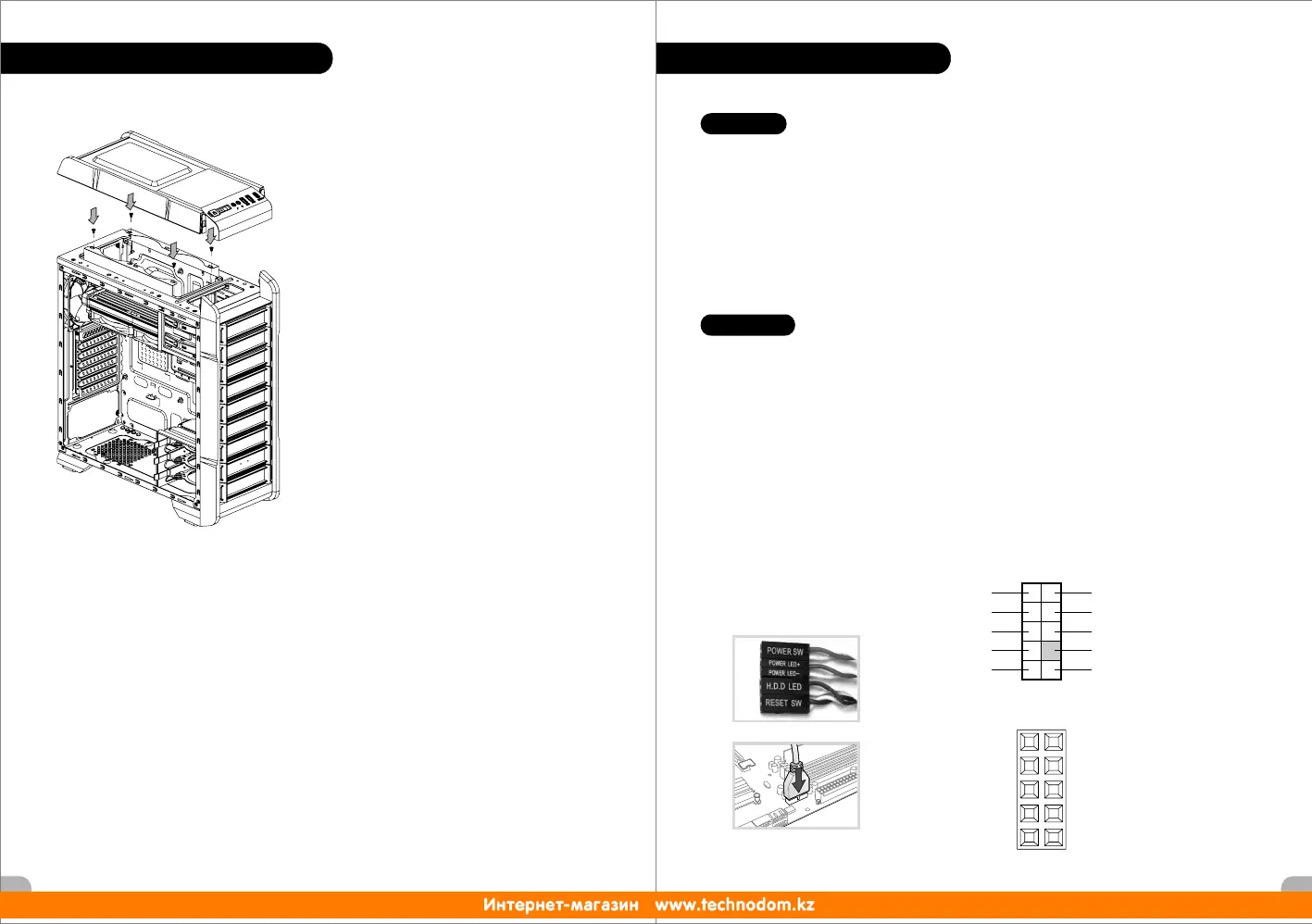 Case LED Connection / On the front of the case, you can find some LEDs and switch leads. Please consult your user