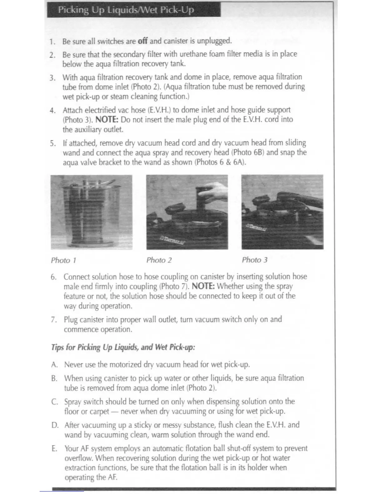 Thermax AF - Picking Up Liquids;Wet Pick-Up; Tips for Picking Up Liquids and Wet Pick-up