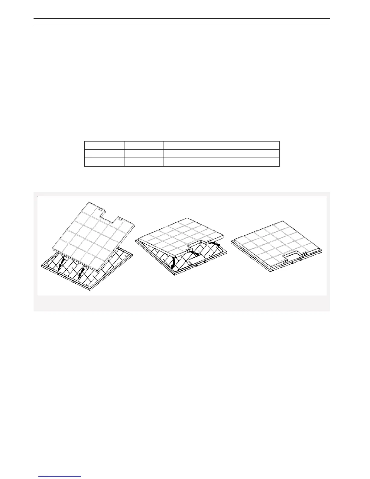 MERK: Hvis viften brukes til resirkulasjon skal det brukes resirkulasjonsfiltre. Resirkulasjonsfiltrene er ikke inkludert ved kjøp av kjøkkenviften