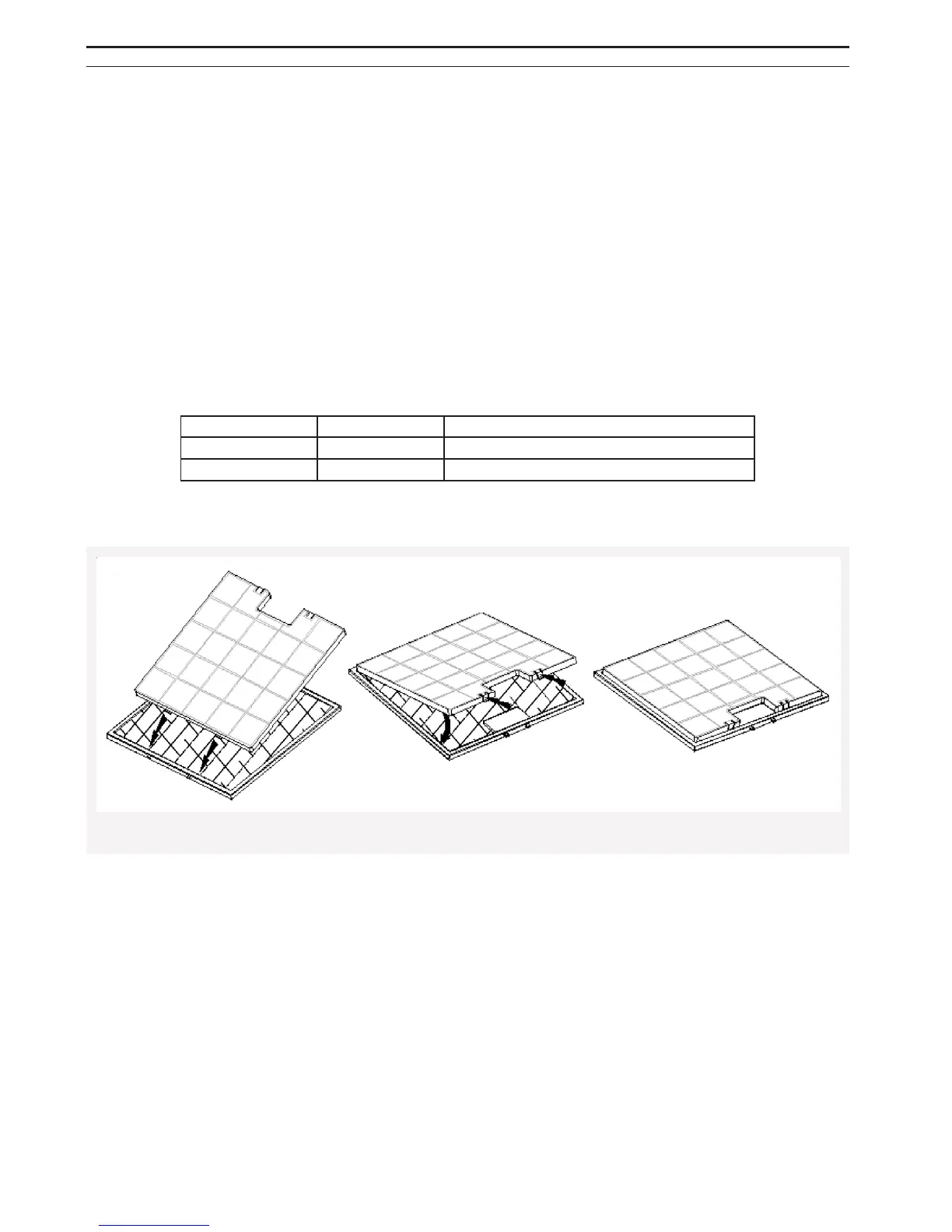 MODEL OF HOOD NUMBER OF FILTERS PRODUCT NUMBER FOR RECIRCULATION FILTER (1 PC.)