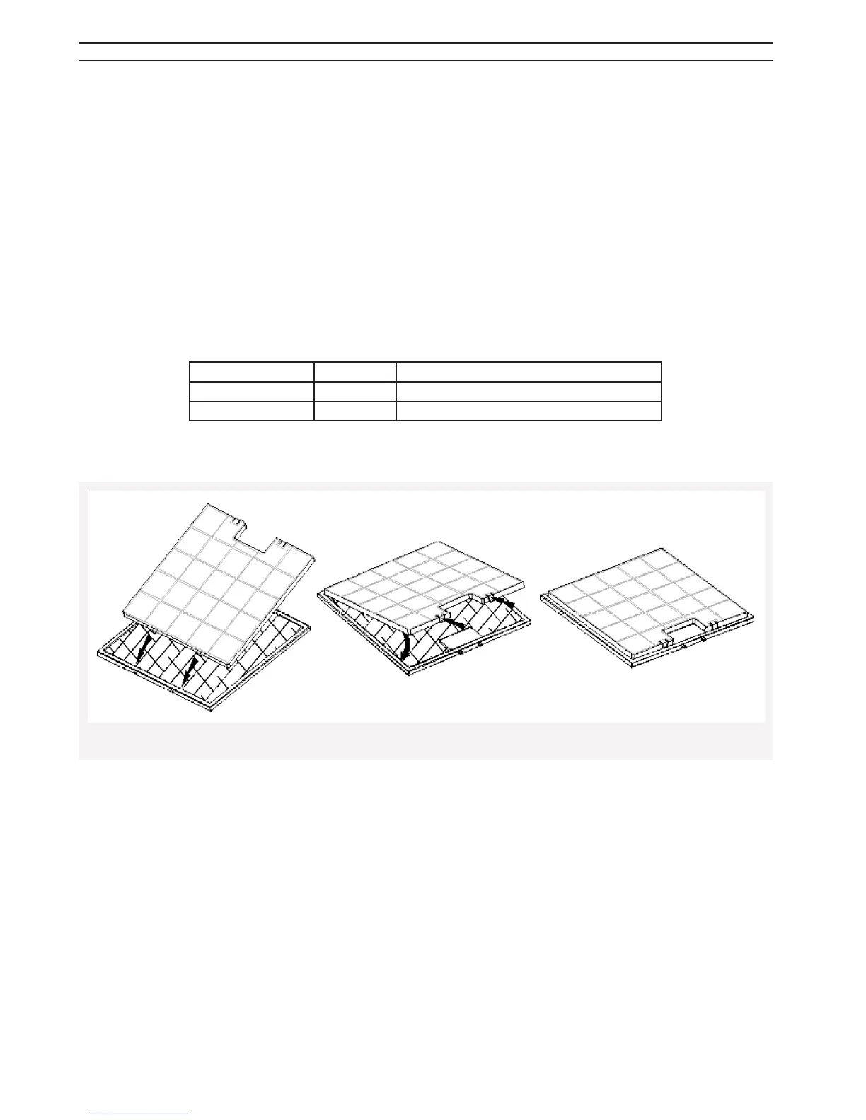 BEMÆRK: Der skal anvendes recirkulationsfiltre, hvis emhætten anvendes til recirkulation. Disse medfølger ikke ved køb af emhætten, men kan