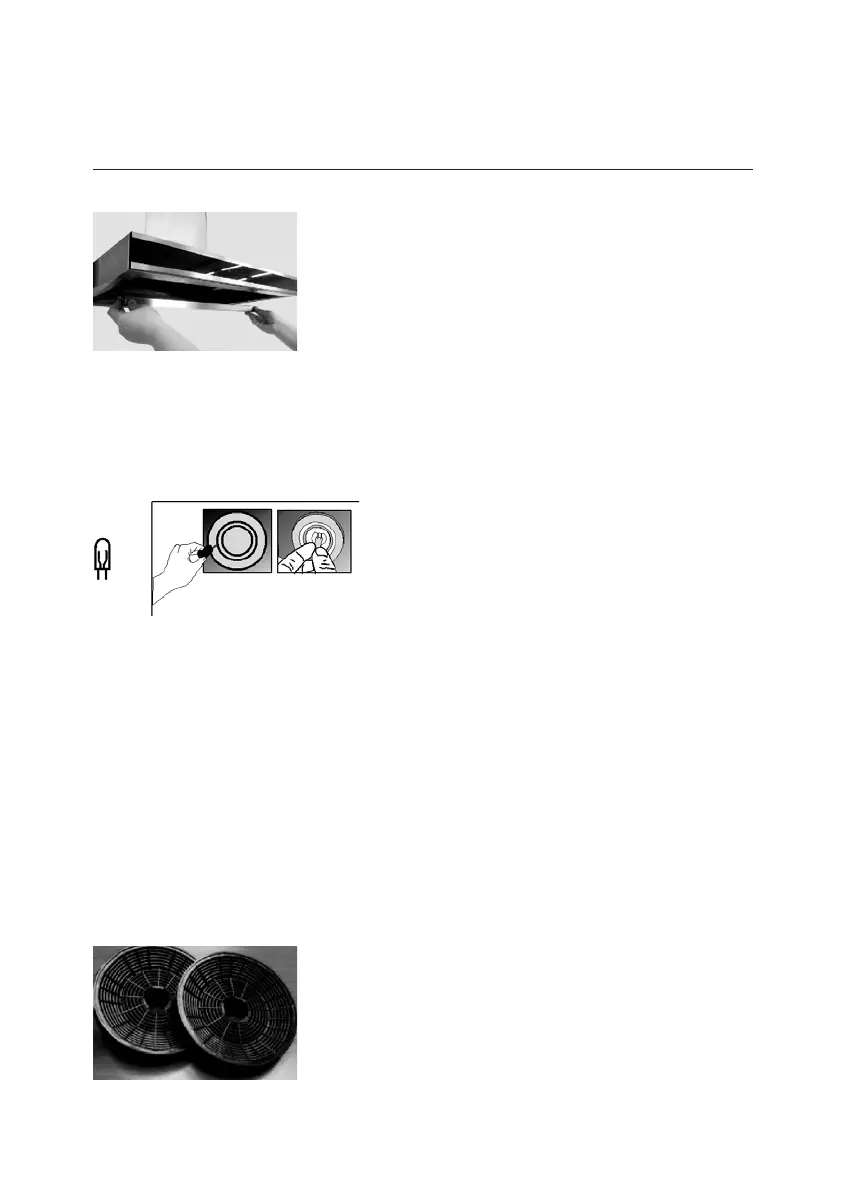 Desconecte la campana de la red eléctrica. Saque el filtro de aluminio. Saque la bombilla fundida