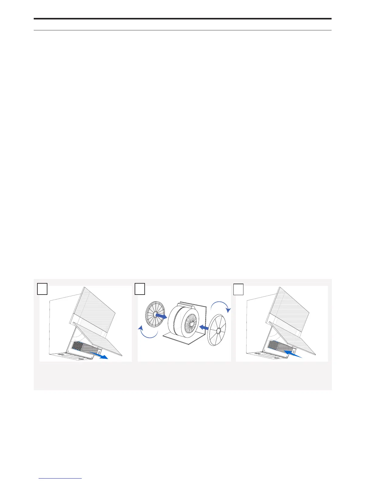 The recirculation filters are installed on the motor inside the hood as follows:
