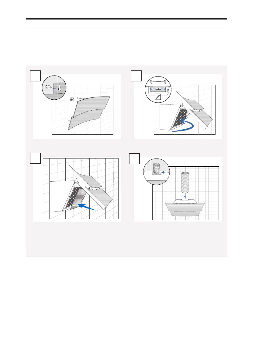 Skal emhætten monteres med aftræk til det fri, monteres kanalen på følgende måde.