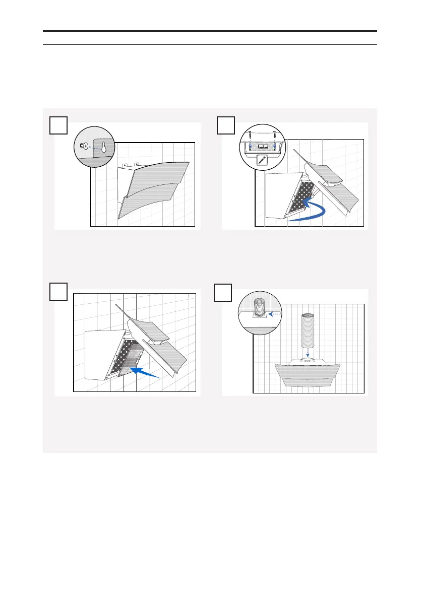 Om fläktkåpan ska monteras med evakuering av luften så ska kanalen monteras på detta sätt.