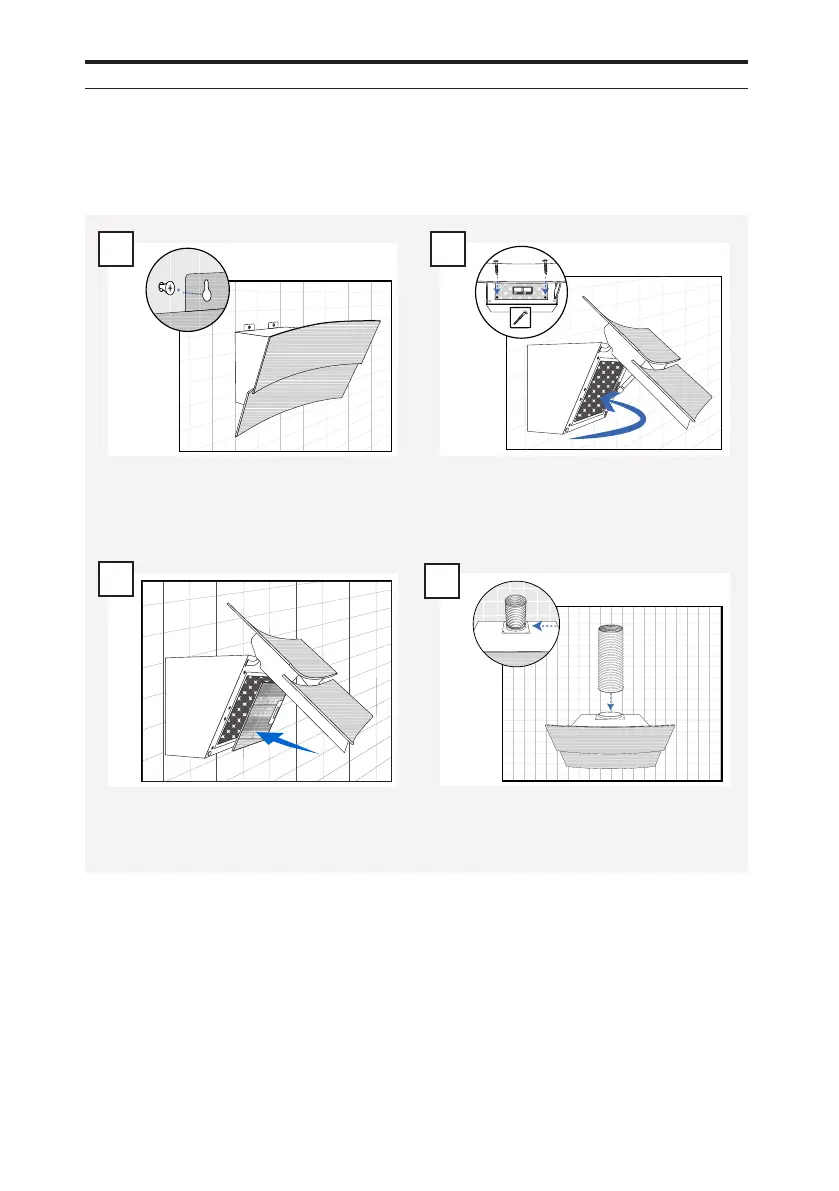 Install the exhaust outlet on the hood.