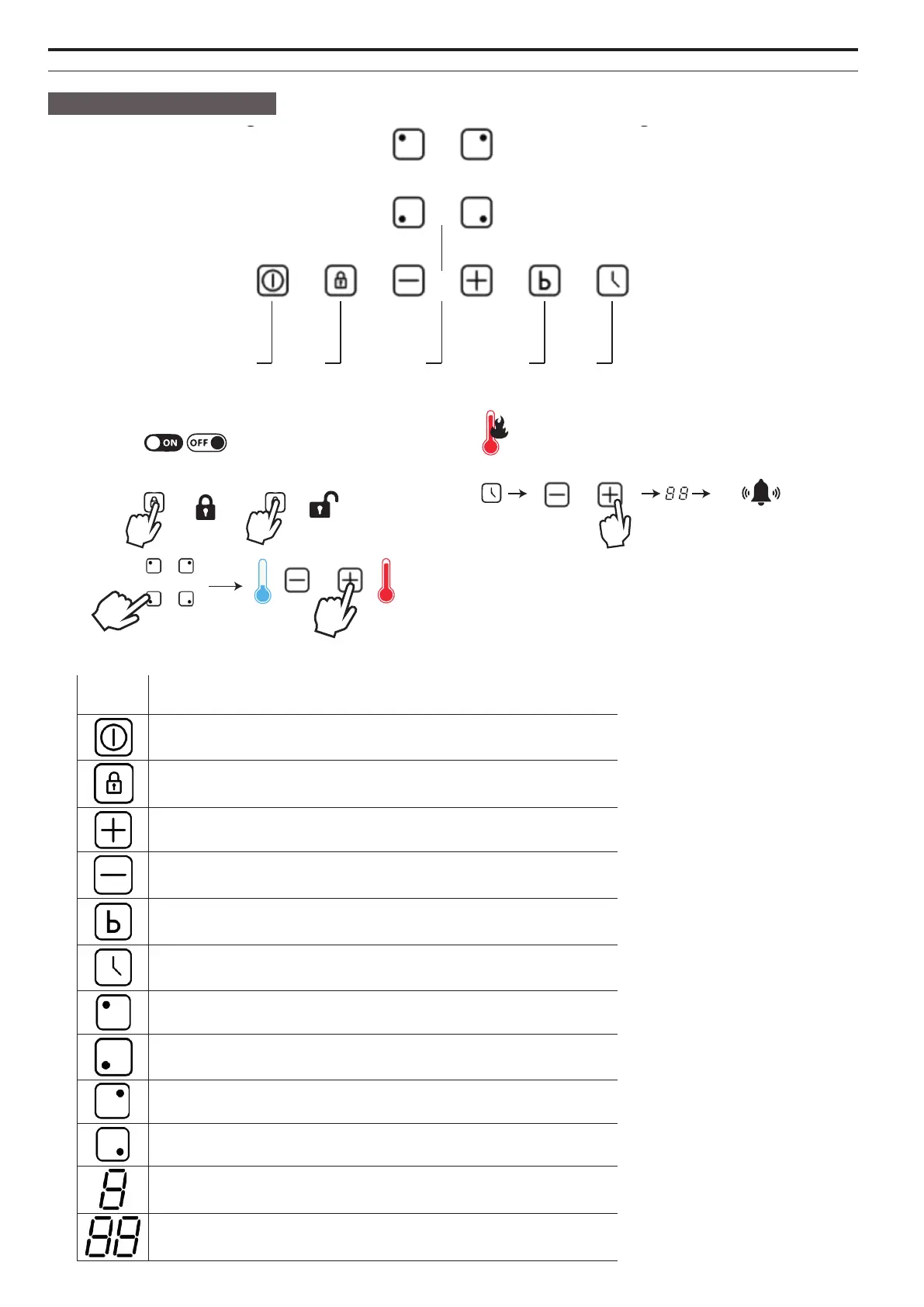+ : Aumenta el efecto en la zona de cocción o aumenta el tiempo