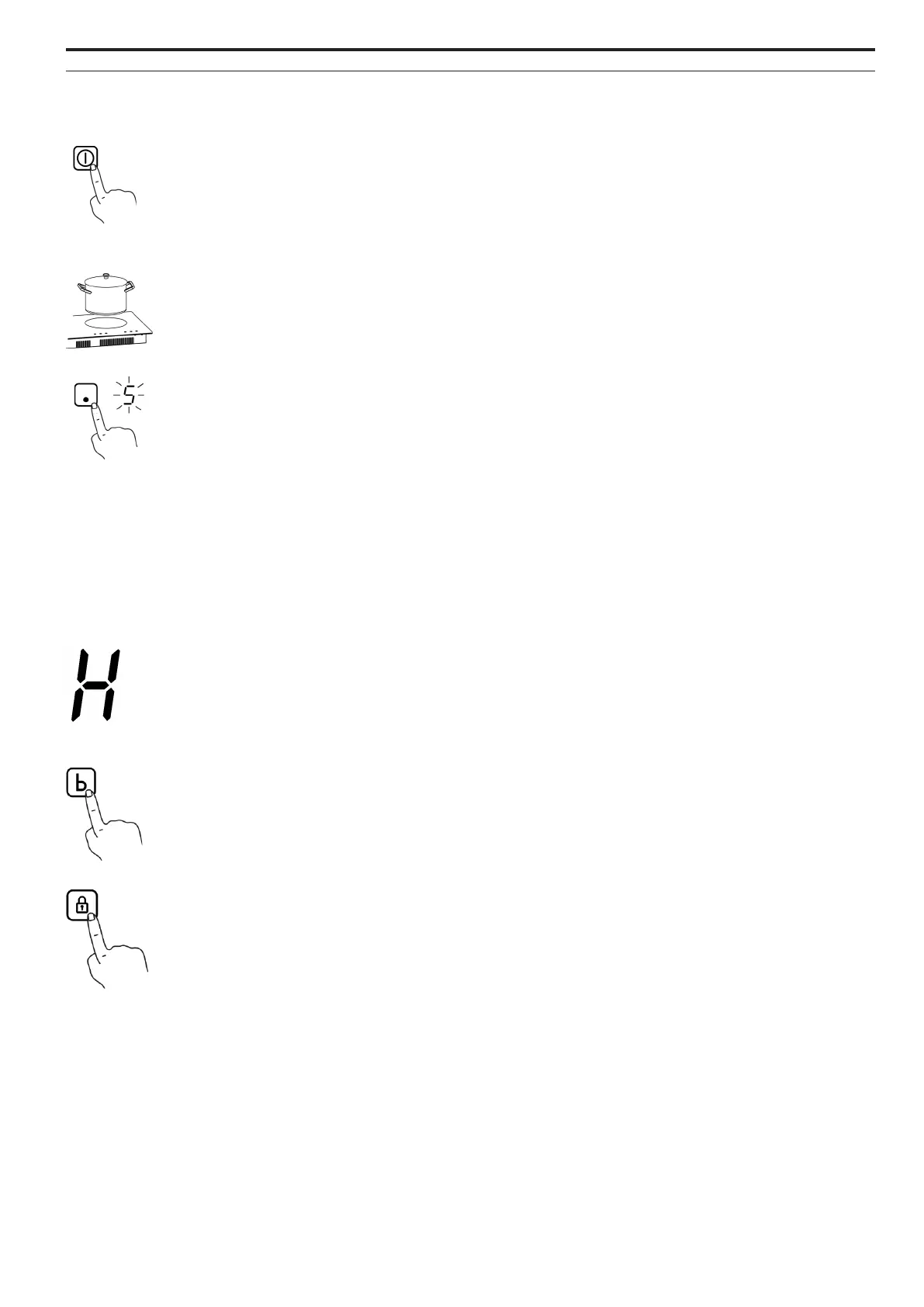 When the ”H” icon is displayed, it means that the cooking zone is still hot. When the cooking zone
