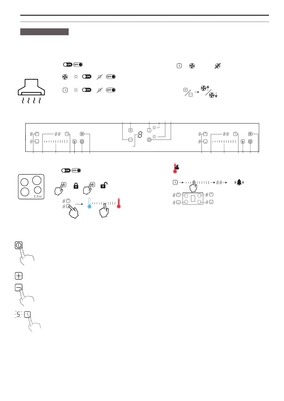 Timer-knapp: Når hetten er i bruk, trykk på timer-knappen. Timerindikatoren lyser, og ti-