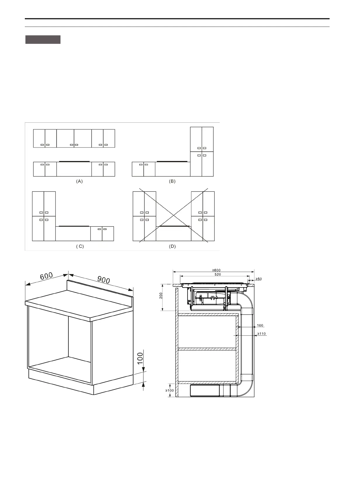 • Als de unit boven een oven wordt gemonteerd, moet de oven een ingebouwde koelventilator hebben of geïsoleerd zijn.