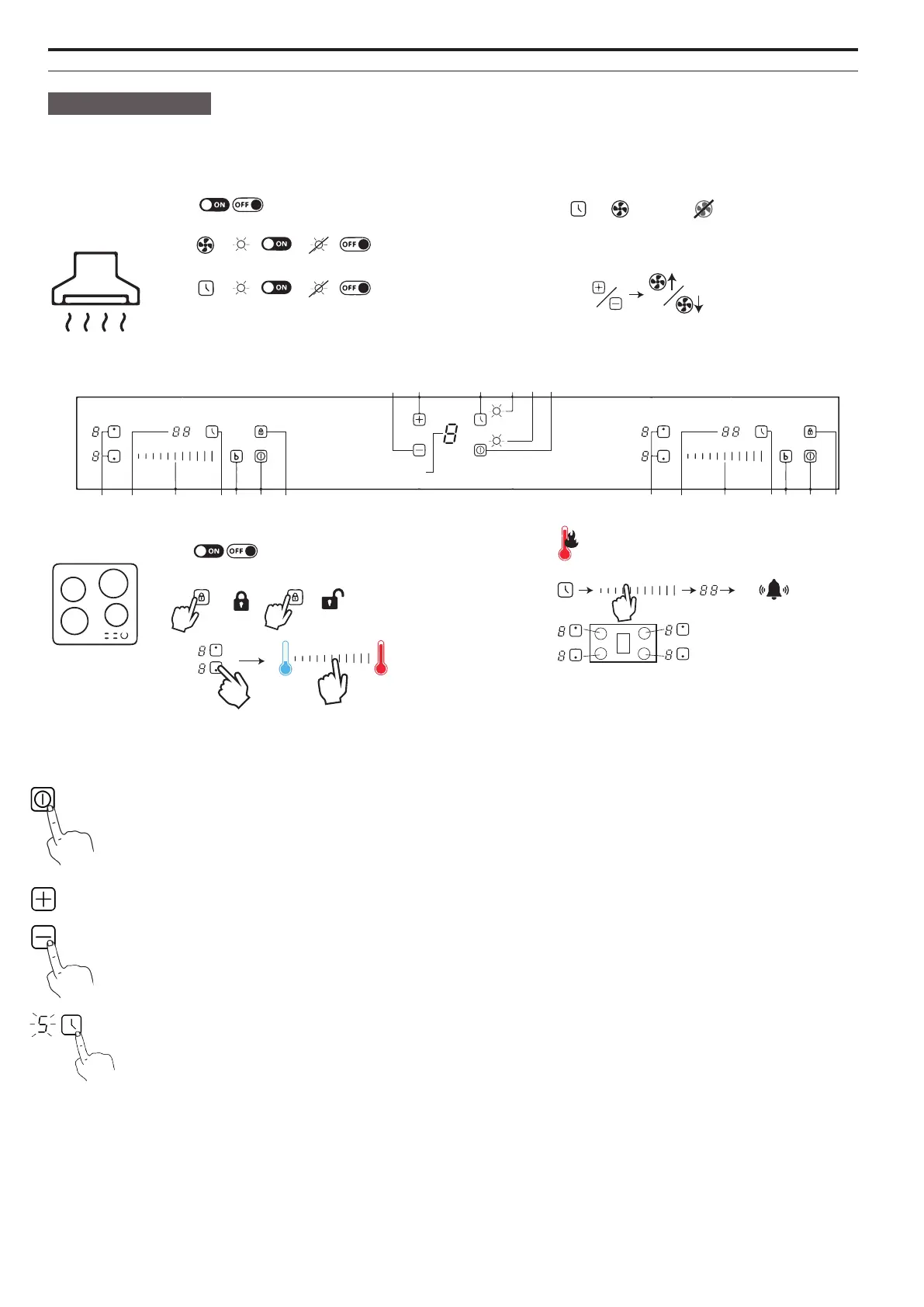”+” / ”-” button: The hood has three speeds; low, medium and high speed. Press ”+” to