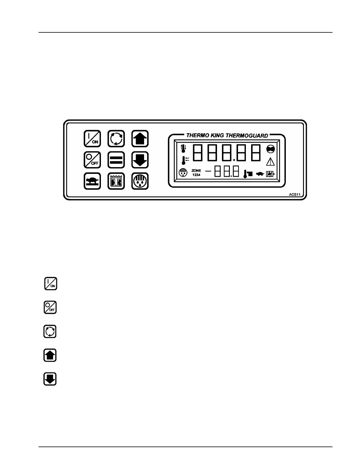 DOWN ARROW KEY. Chooses prompt screen actions or decreases setpoint or other setting.