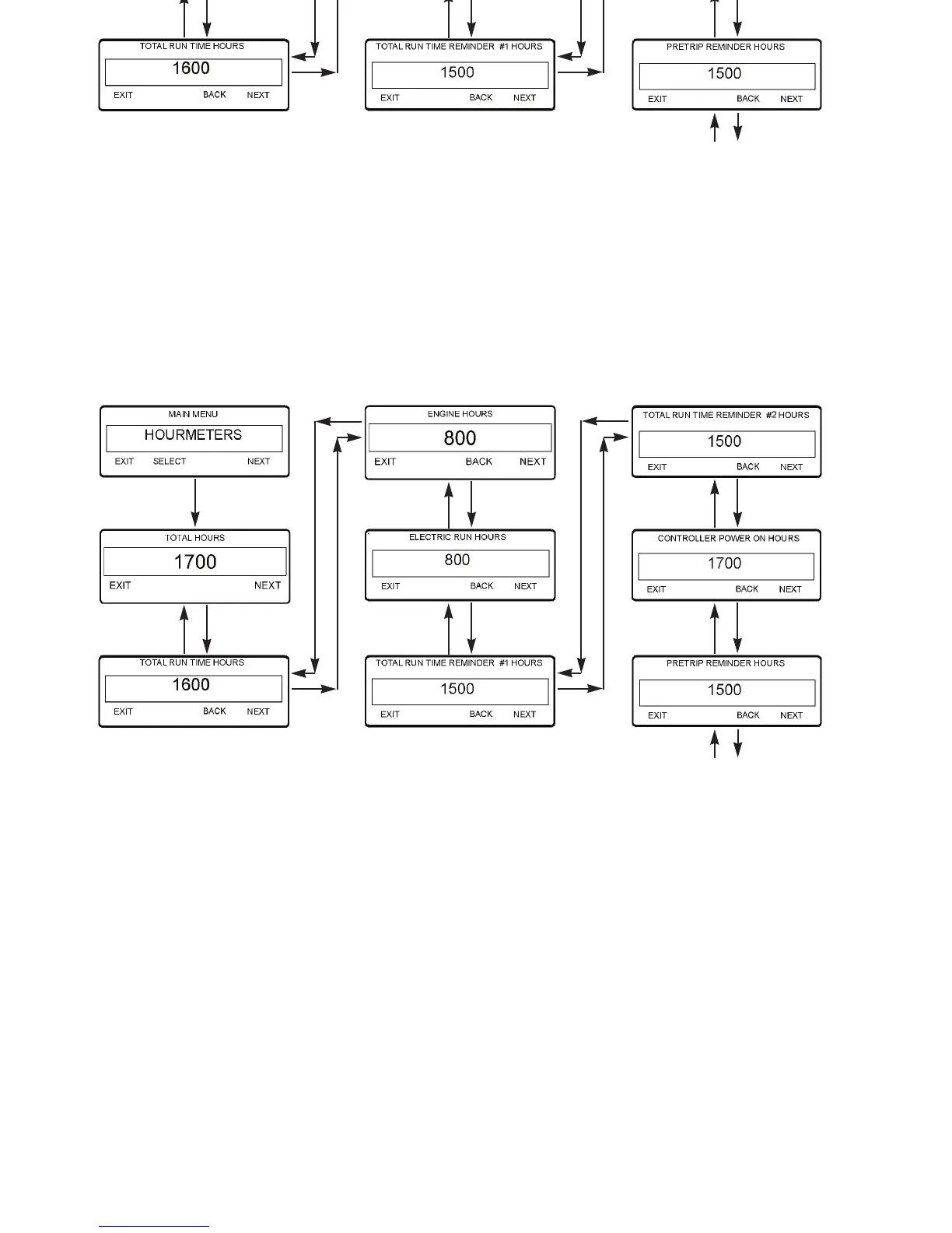 Figure 66: Viewing Hourmeters Screen Sequence (continued on next page)