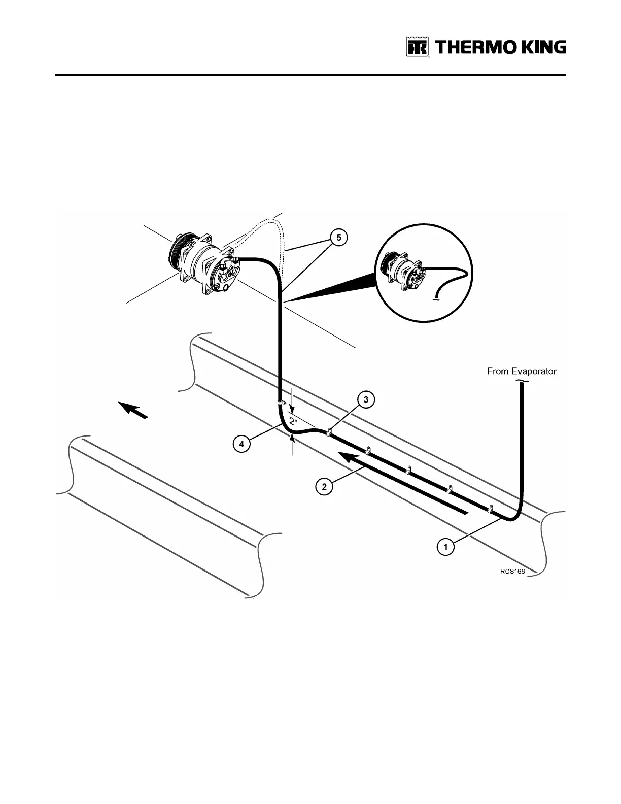 5. After vertical run, the suction line must be horizontal or downwards to the compressor and cannot have any sag or