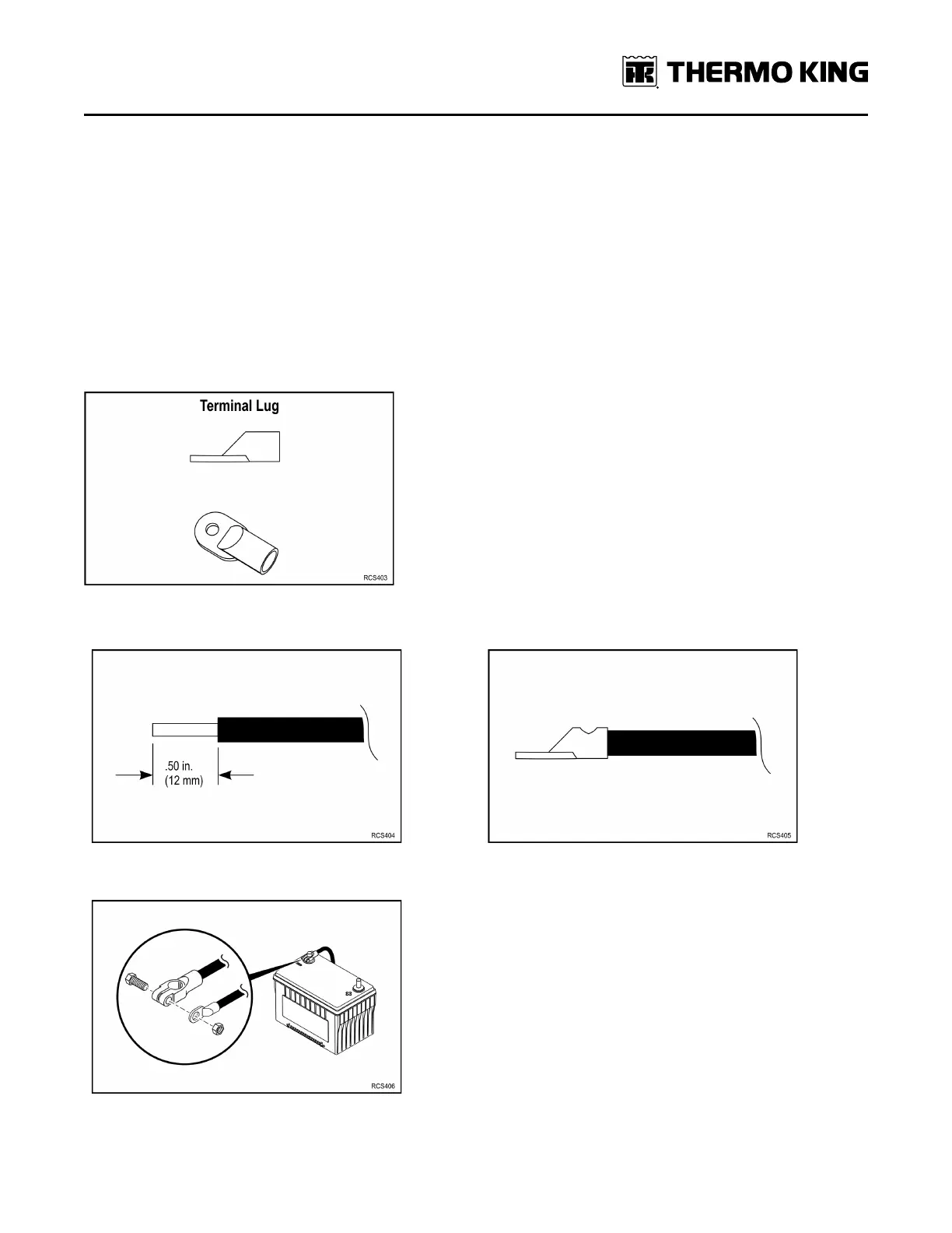 1. Strip wire .50 in. (12 mm). 2. Crimp terminal lug securely onto wire using correct crimper tool.