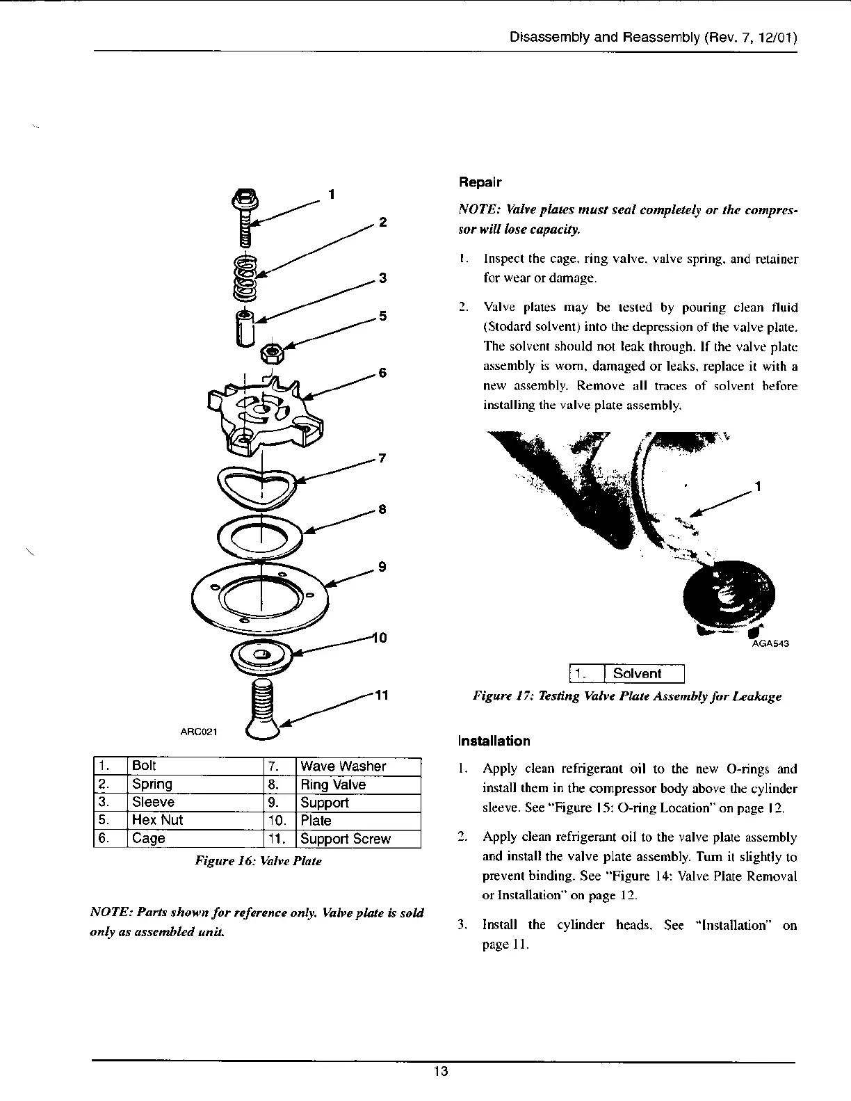 lnspecl the cage. ring valve. valve spring.