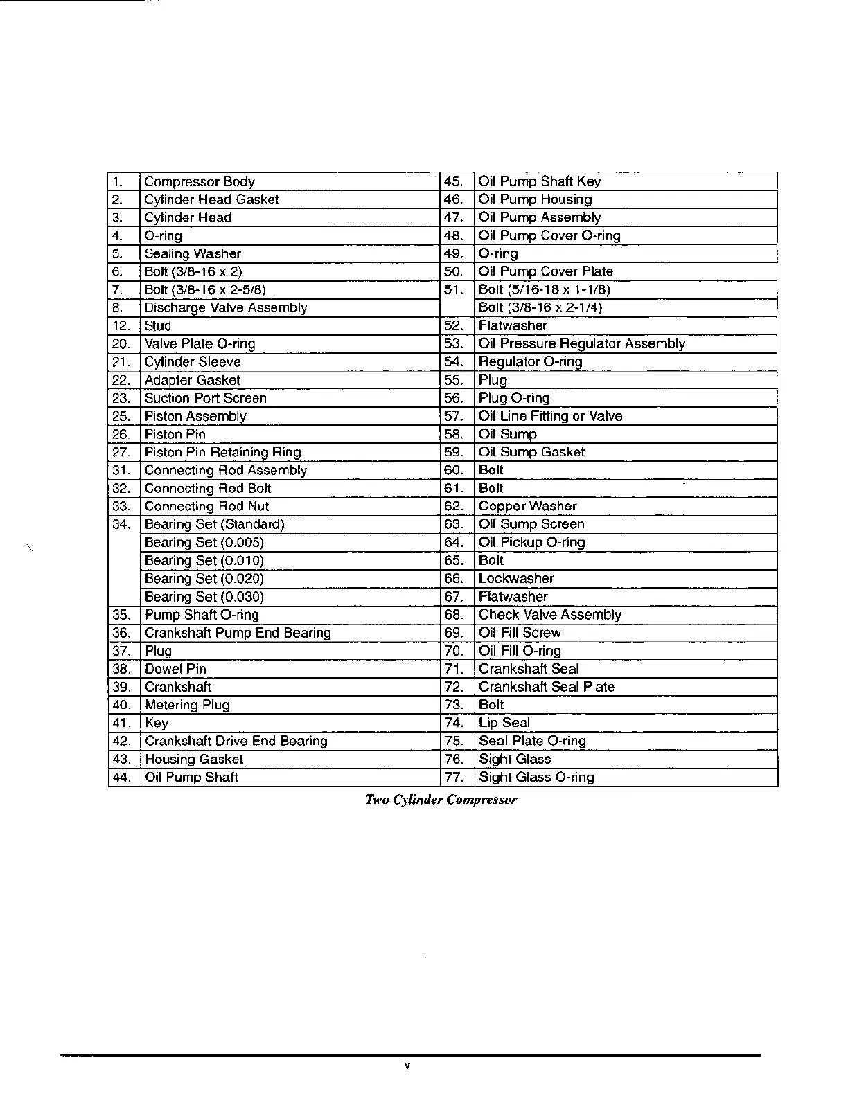 36. Crankshatl Pump End Bearing 69. Oil Fill Screw
