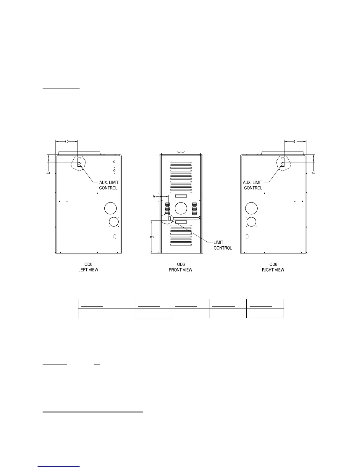 The unit listed in the table below must have the limit control installed at the time of unit installation.