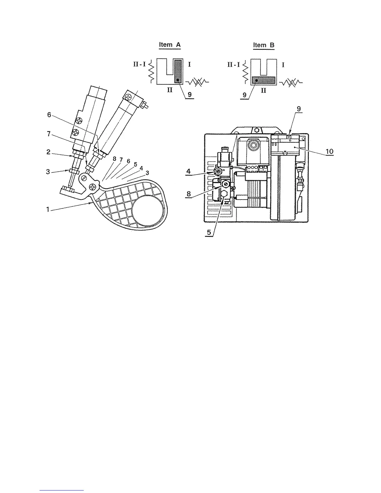 Adjustment of air shutter: place the small plug (9) of the economizer (10) into the position II (Item B).