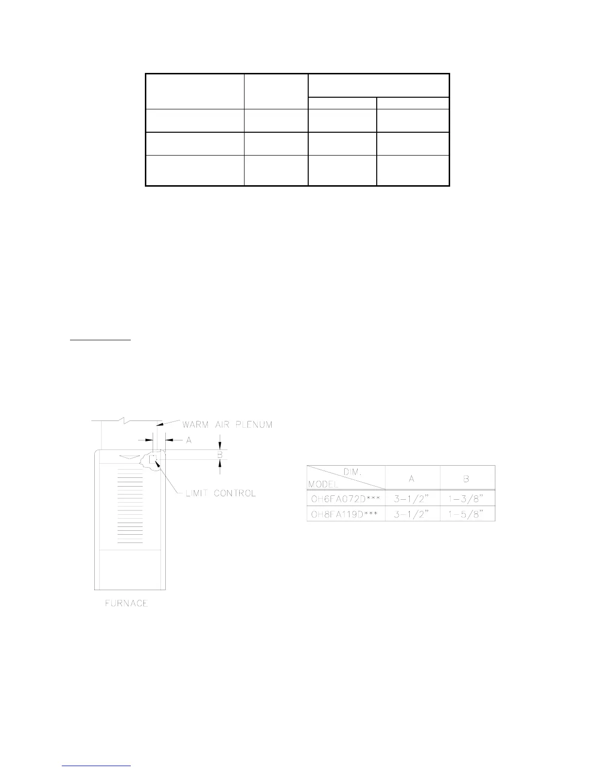 The unit listed in the table below must have the limit control installed at the time of unit installation.