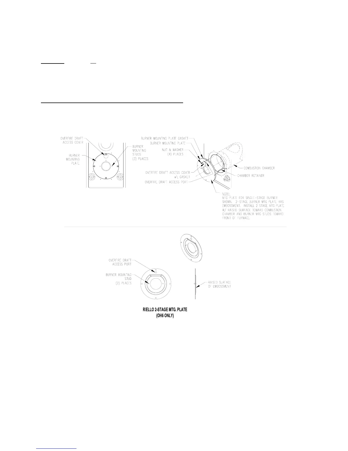 The oil burner will mount on three stud mounting bolts on the lower mounting plate covering the opening