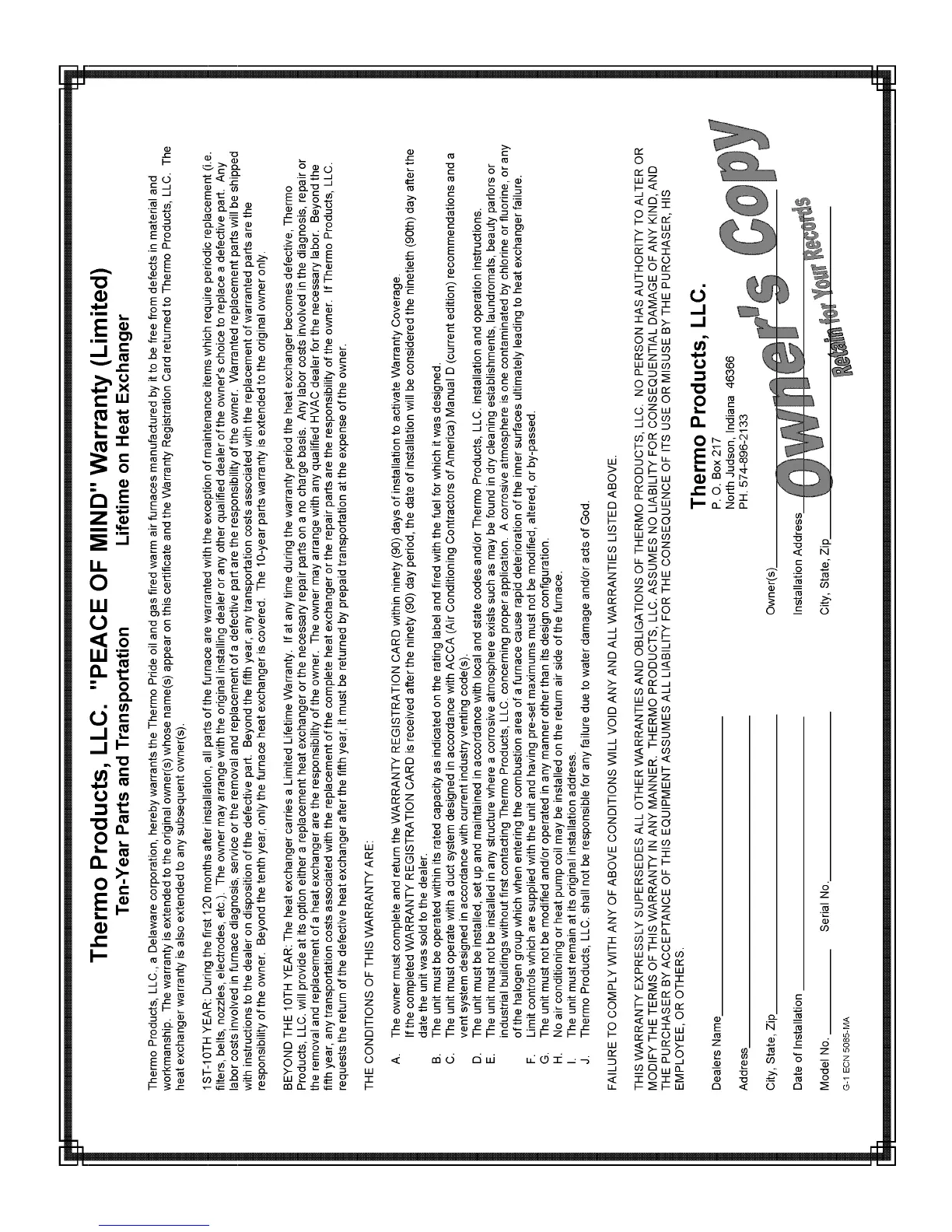 Thermo Pride OH6FA072D48B - Limited Warranty Information; Warranty Coverage Details; Warranty Conditions and Registration; Warranty Voiding Conditions