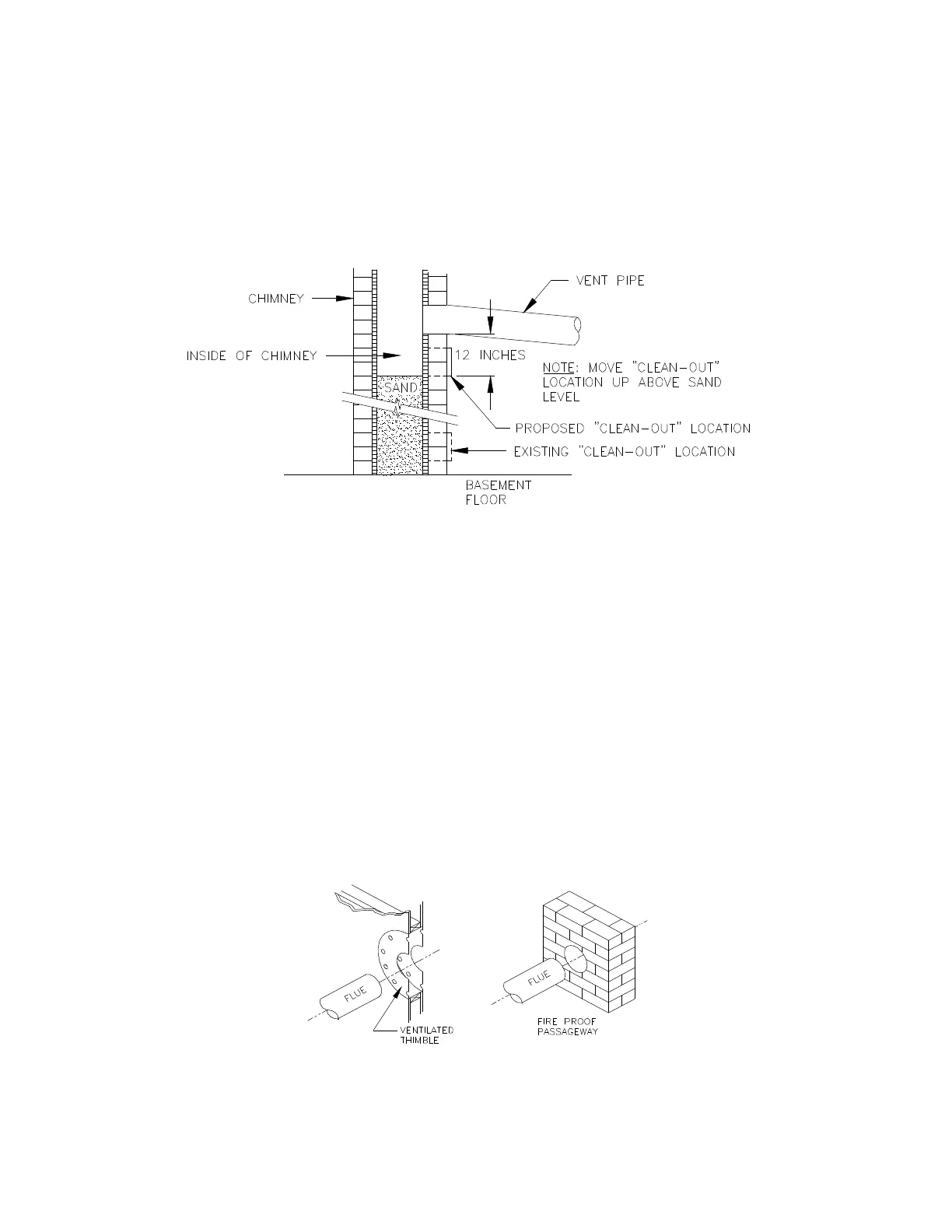 base of the chimney with sand to within 12 inches of the vent connector pipe after relocating the clean-out