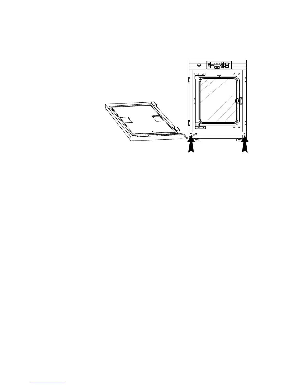 2. Open the outer door and remove it by lifting it off its hinge pins. Place