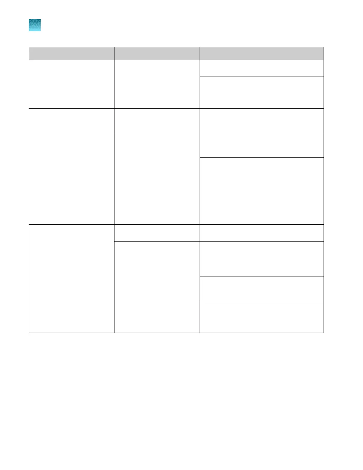 Observation Possible cause Recommended action
