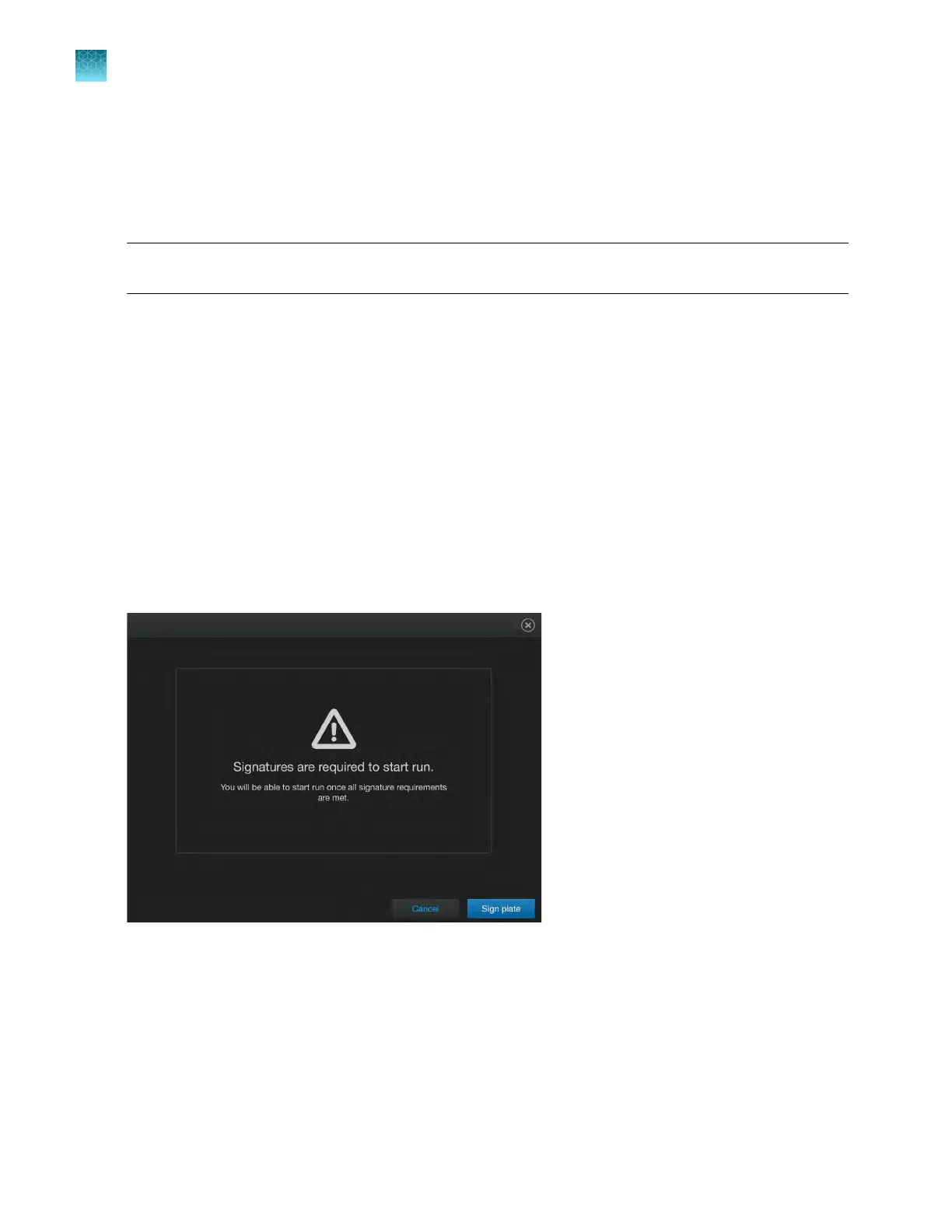 required when you start a run. If starting a run is configured to require signatures, a message is