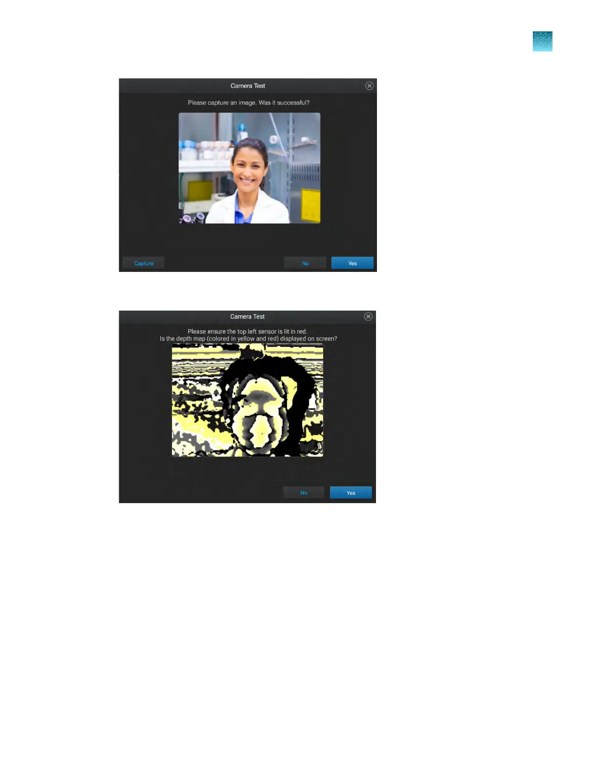 amera Test screen, tap Yes to confirm that the depth map is displayed on the screen.