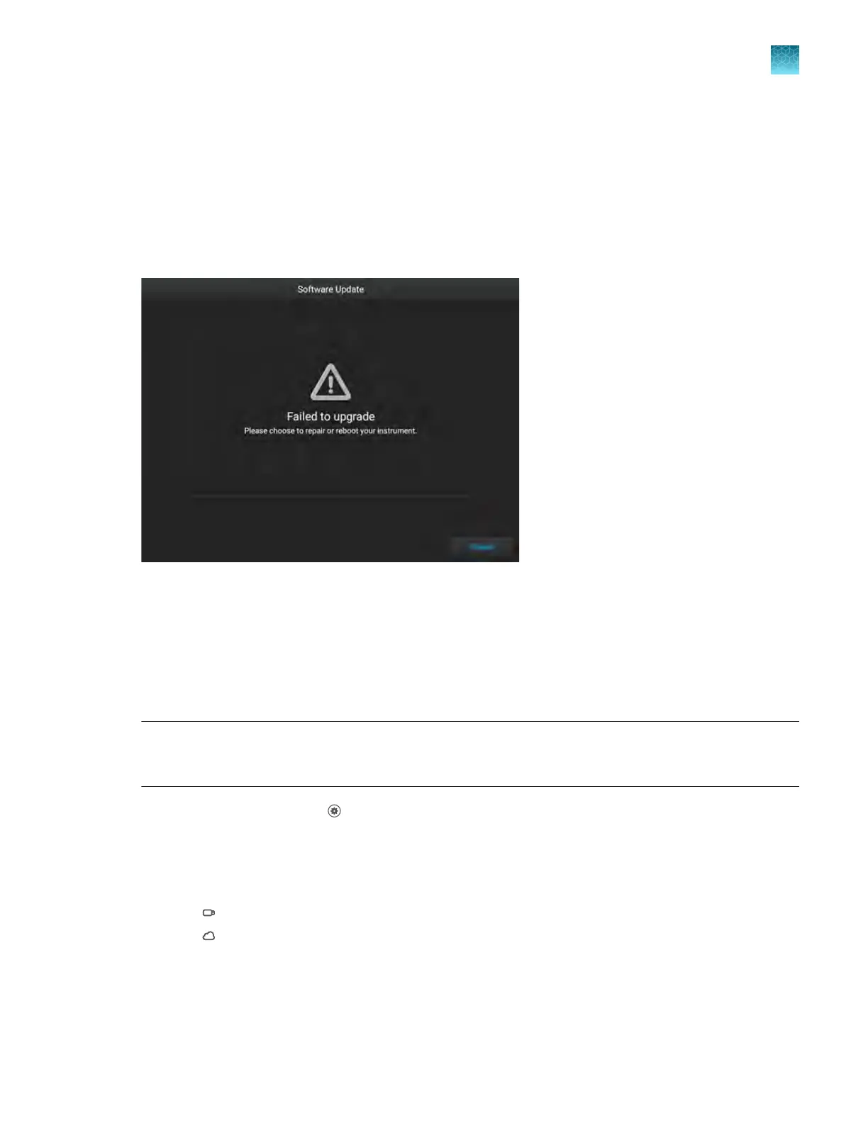 If the software update failed, the Software Update screen displays Failed to upgrade.