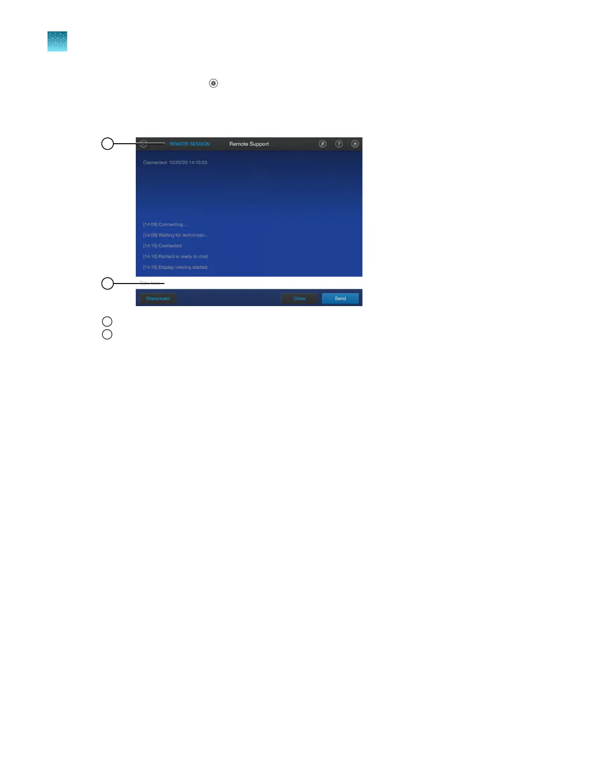 The remote session can also be disconnected from the chat screen. A Support representative can