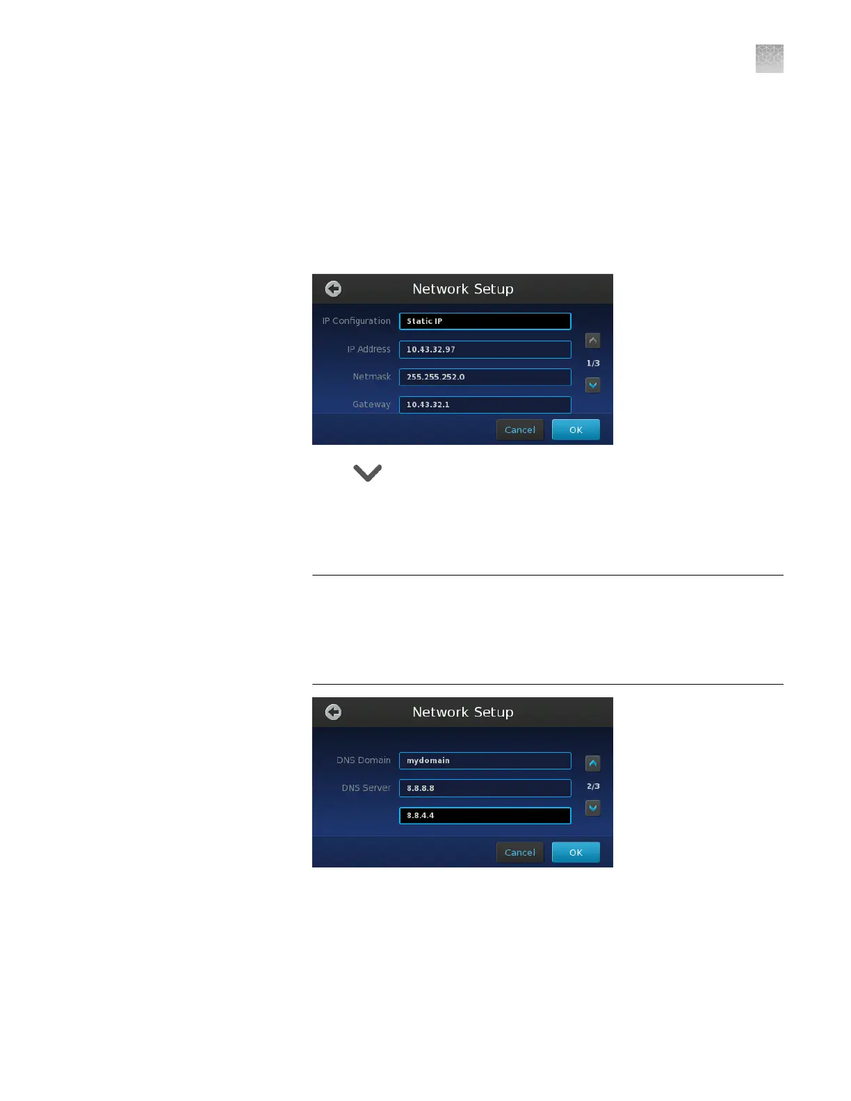 If you elected to assign a static IP to the instrument, touch the following