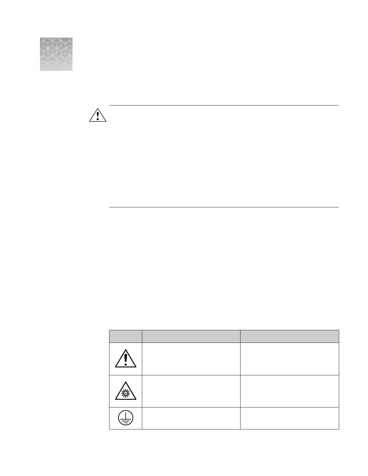 convey important safety information. In this document, the hazard symbol is used