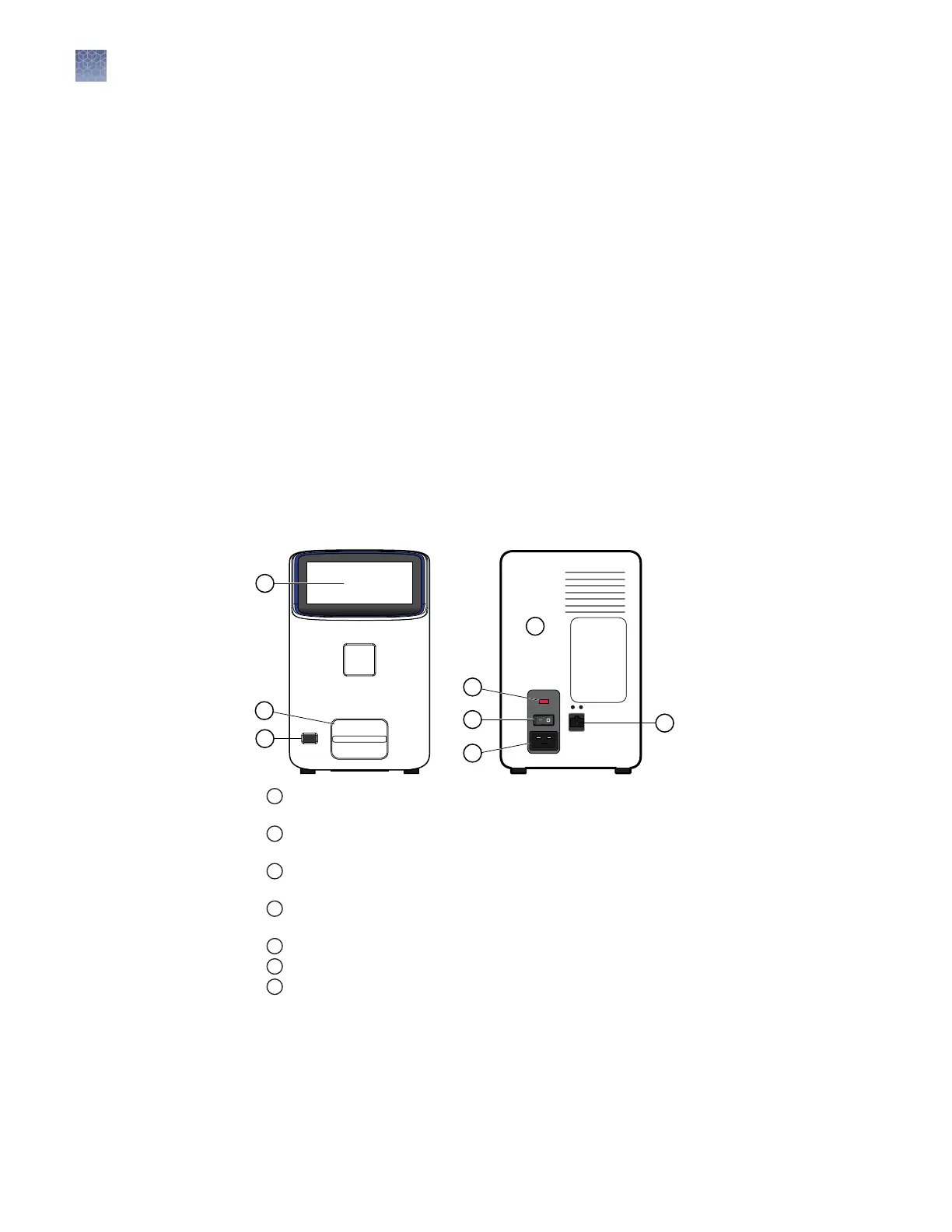 Power switch—Power switch for the instrument, where the states are on ( | ) or off ( O ).