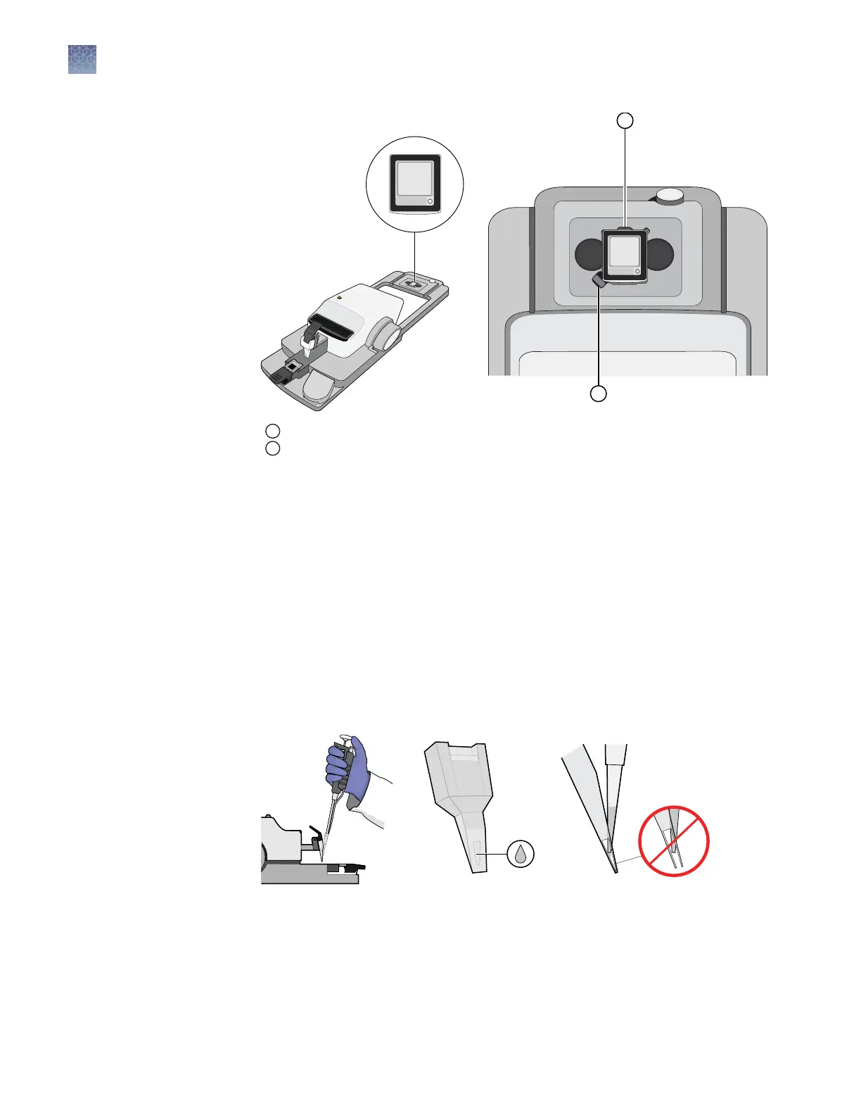 Hold the pipette so that the tip meets the loading port at a sharp angle and