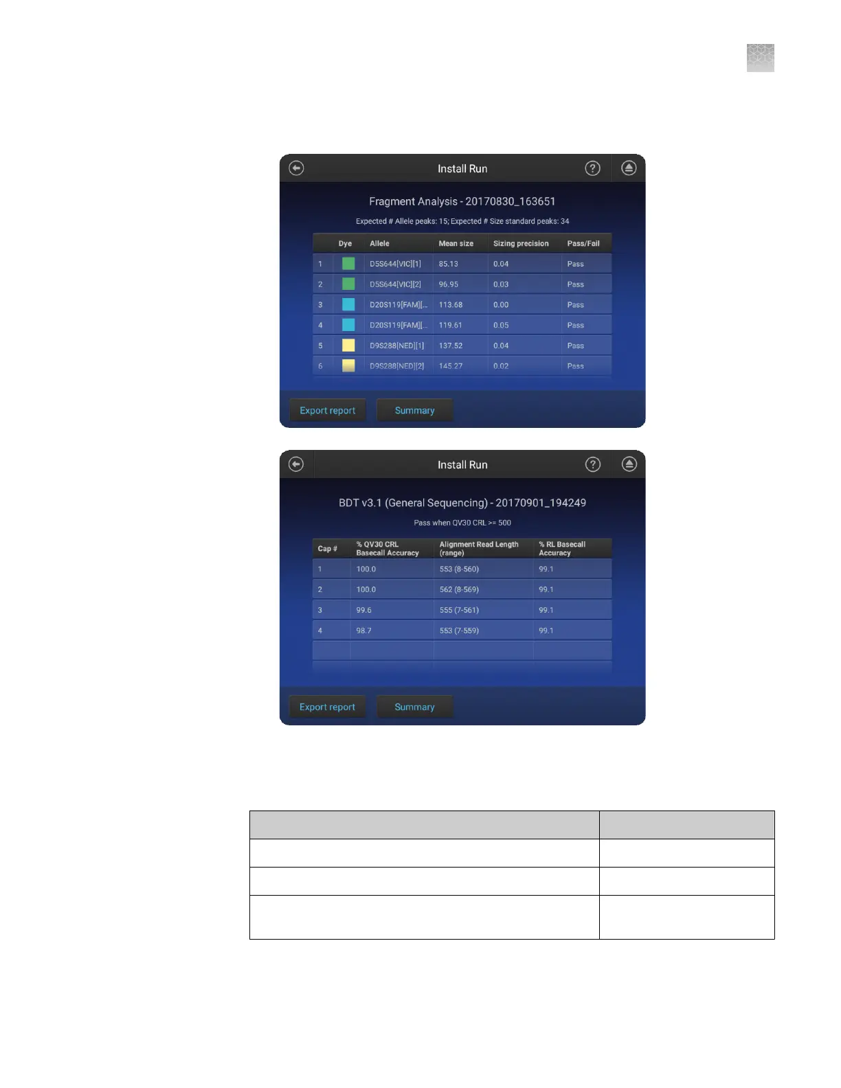 Touch Detail to see allele-specic details for fragment/HID analysis and basecall